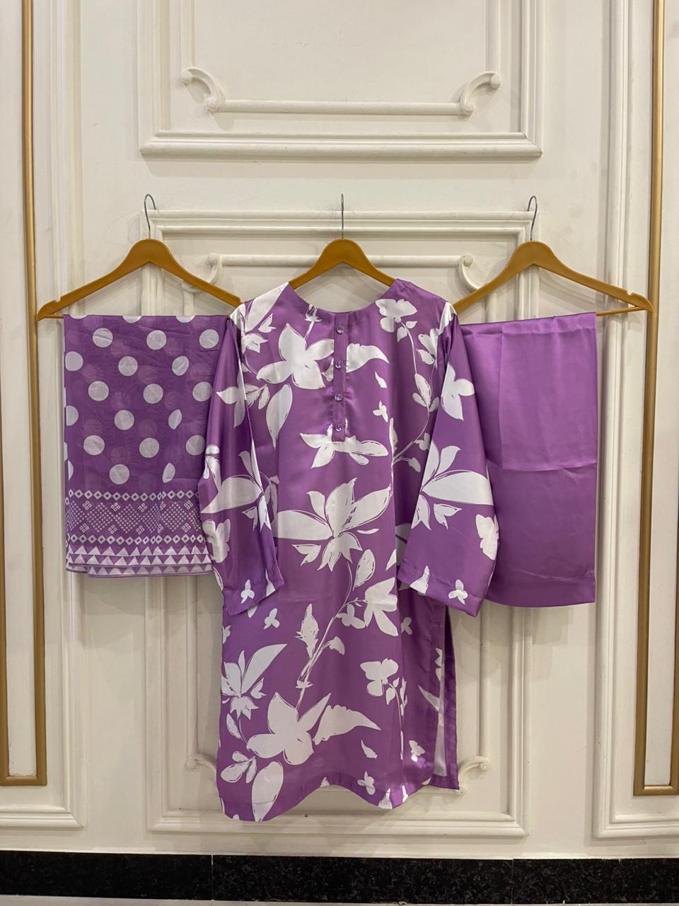 Shamos silk printed 3pc unstiched