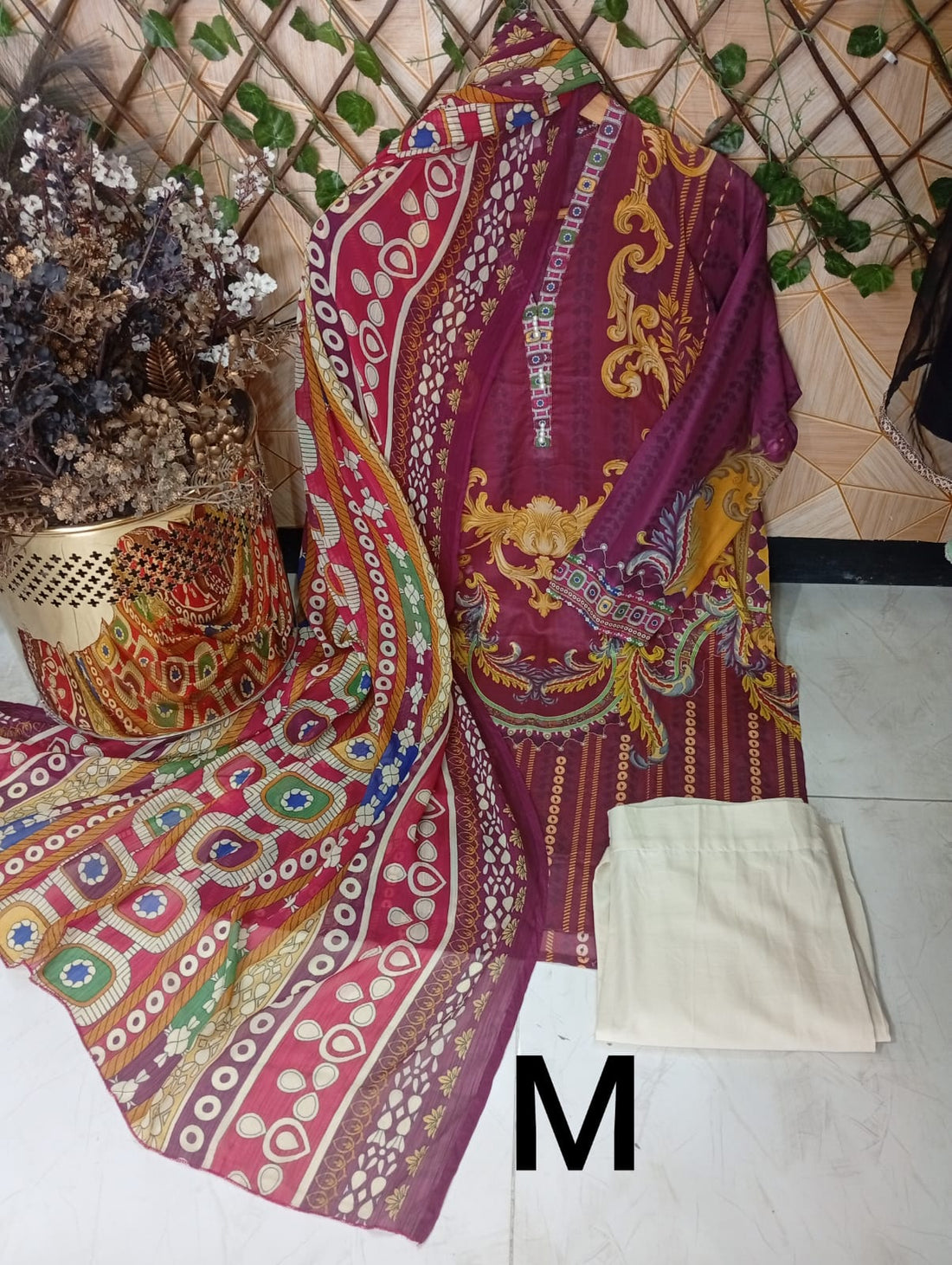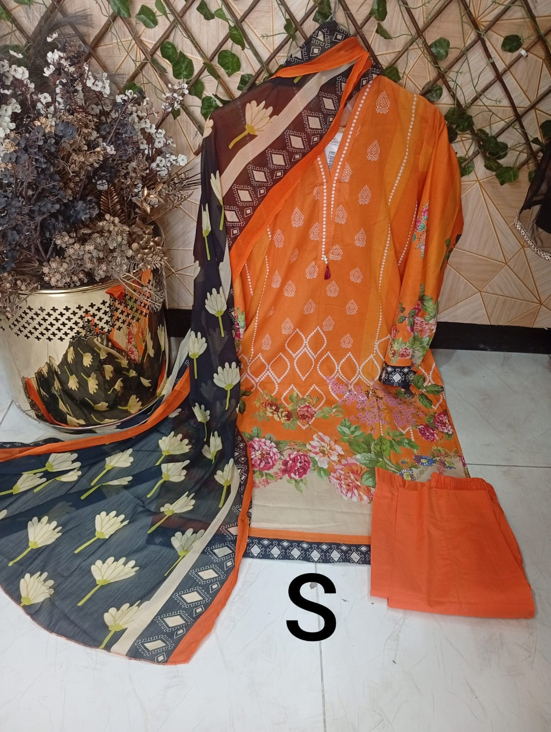 Lawn 3pc in small(binsaed fabric)