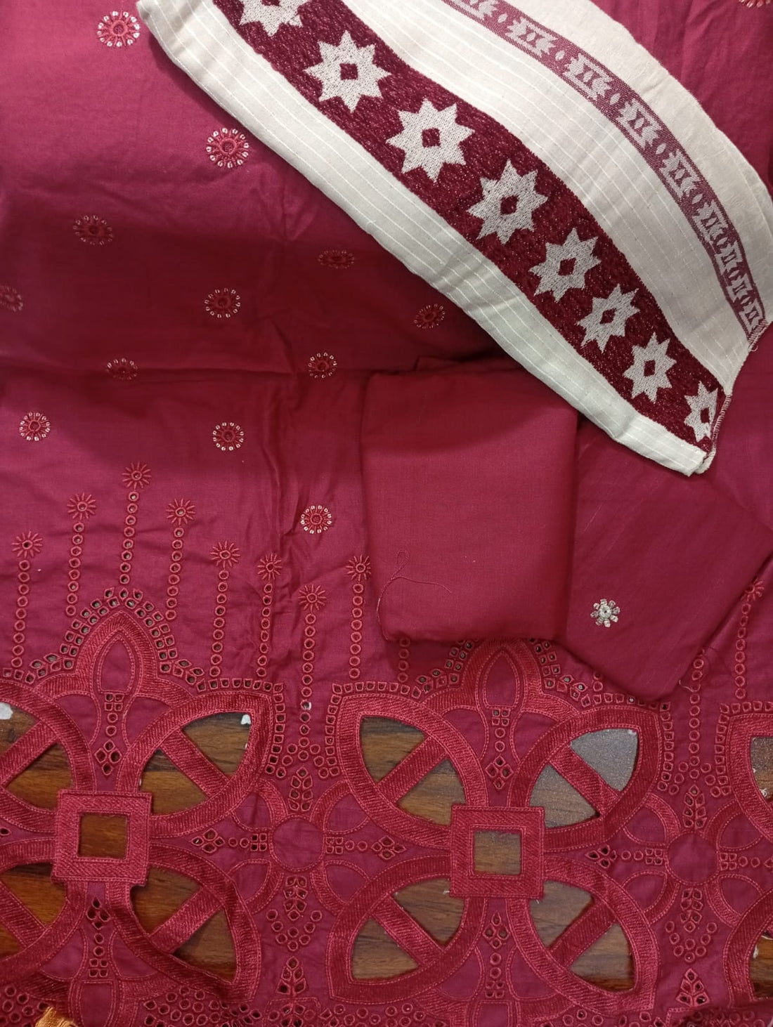 Dhanak marina 3pc ,cutwork daman wd pashmina velvet shwl