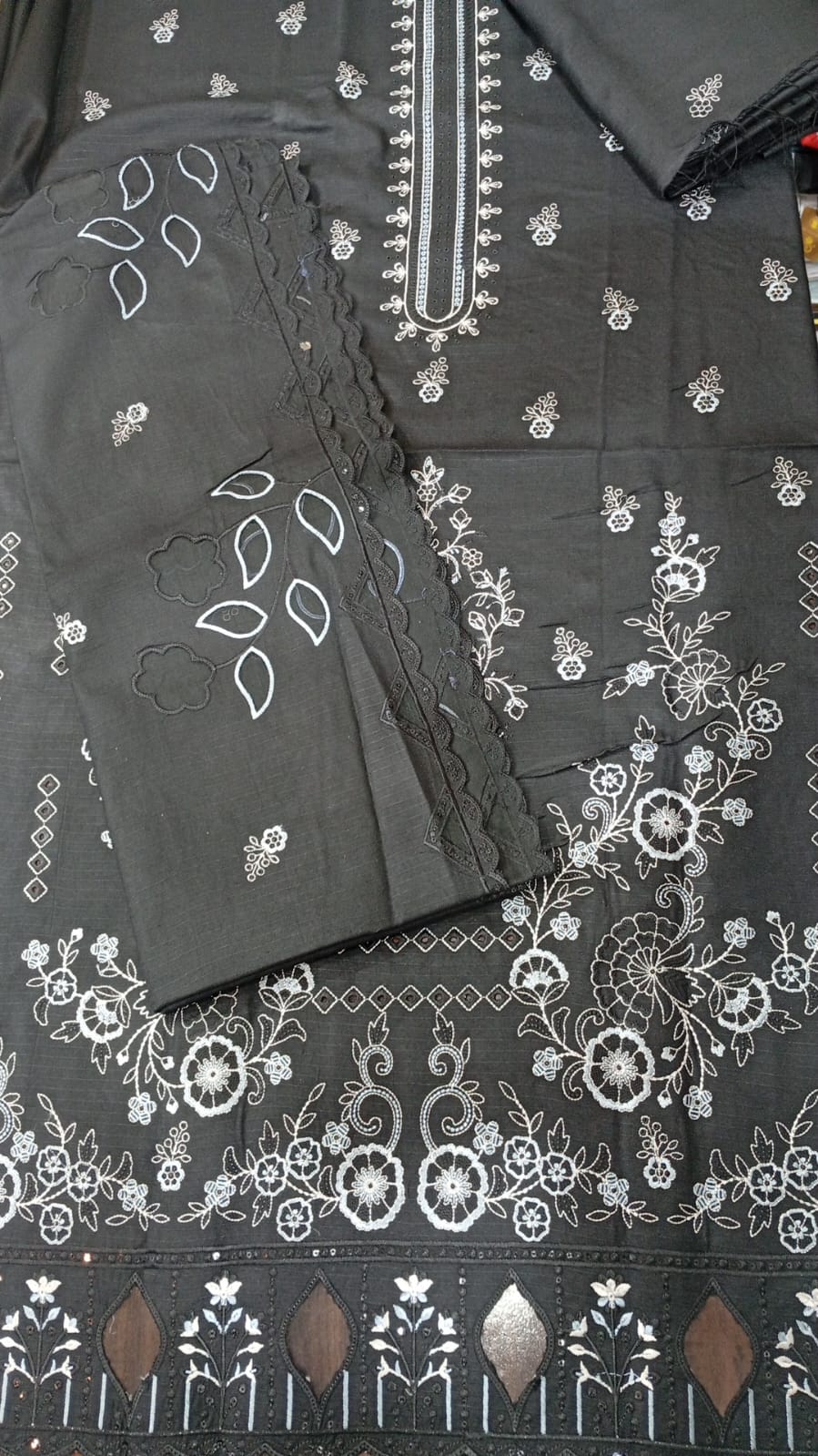 Dhanak marina 3pc, embroidered cutwork shirt plan trouser nd cutwork dupata..