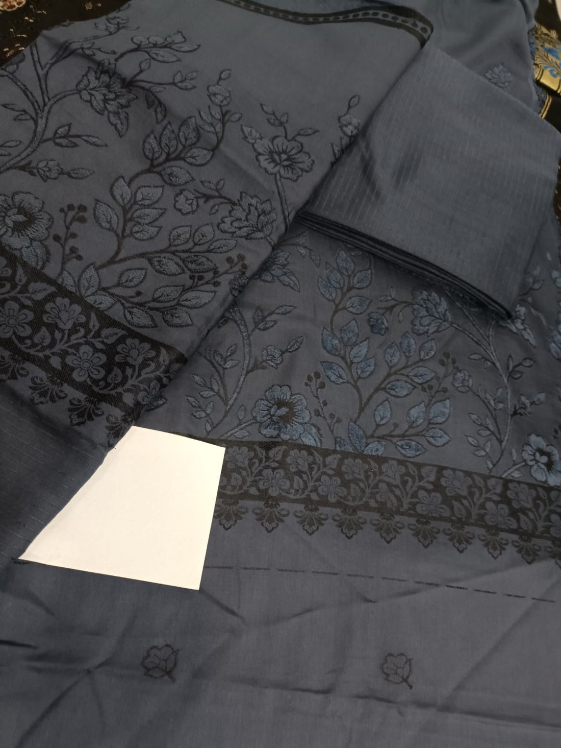 Velvet Jacquard 3Pc suit in Dhanak stuff(unstiched)