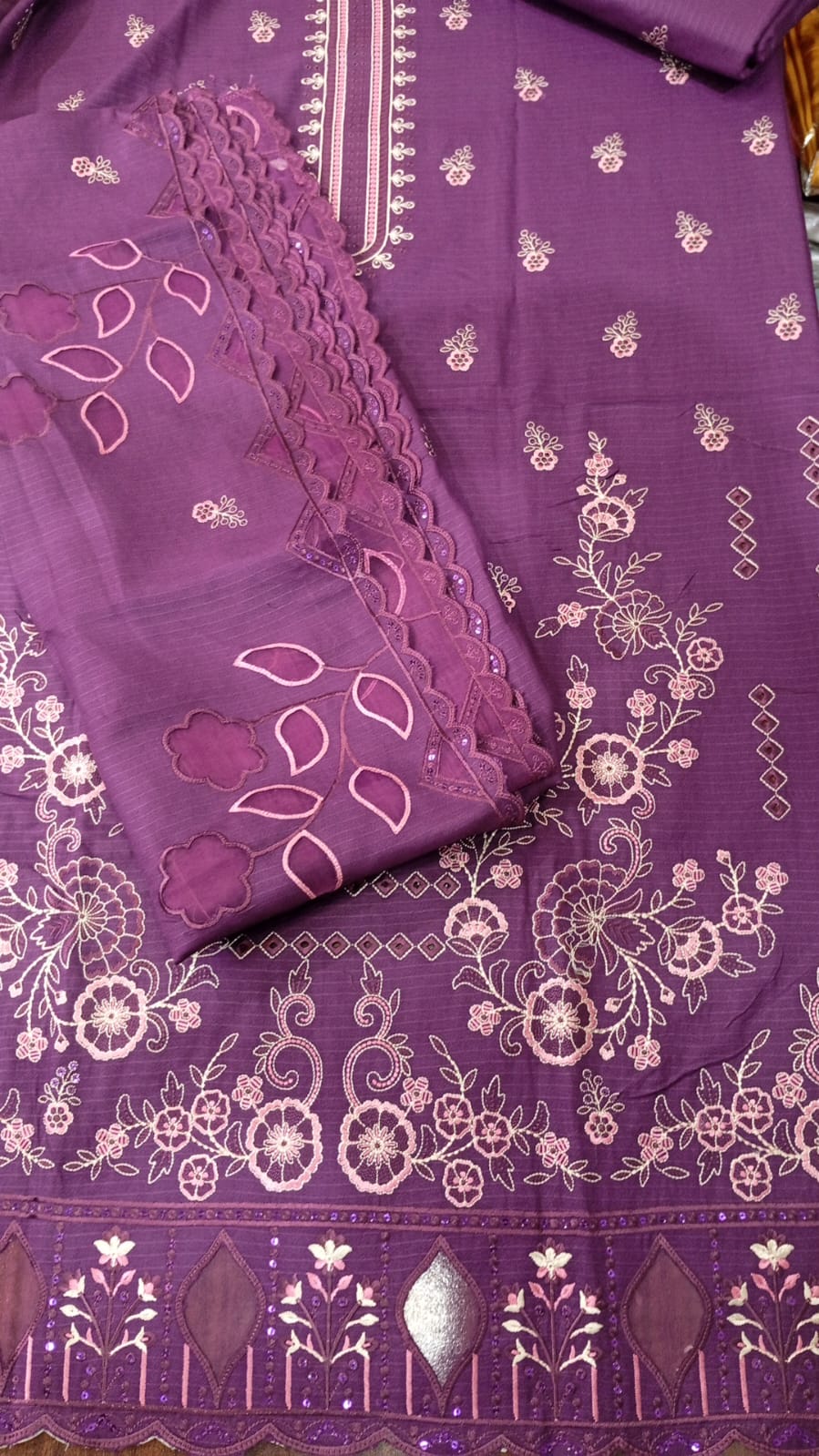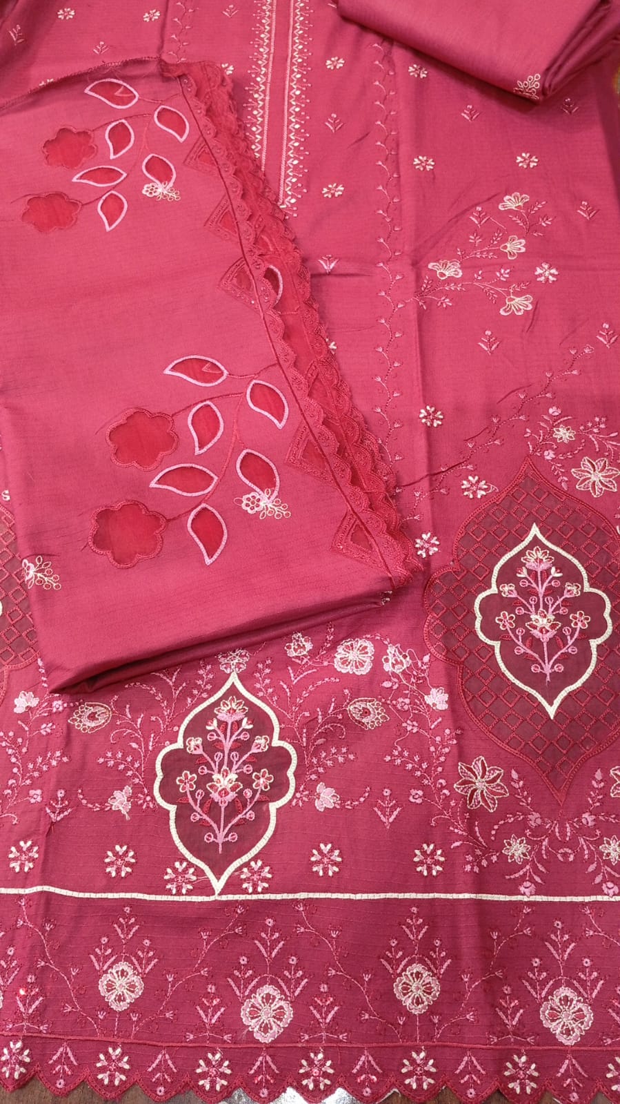 Dhanak marina embroidered cutwork suiting wd cutwork dupta 3pc..