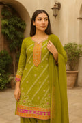 # 2PC SHISHA SILK Elevate your wardrobe with this exquisite two-piece shisha silk ensemble, meticulously crafted for the discerning wearer. The luxurious silk fabric showcases intricate shisha mirror work paired with delicate stone embellishments, creating a sophisticated interplay of light and texture. Each piece is thoughtfully designed to complement the other, offering versatility for both formal occasions and elevated everyday wear. The mirror detailing catches light beautifully, while the stone accents add refined dimension and elegance. Perfect for those who appreciate fine craftsmanship and timeless style, this collection represents the pinnacle of traditional artistry meets contemporary fashion.