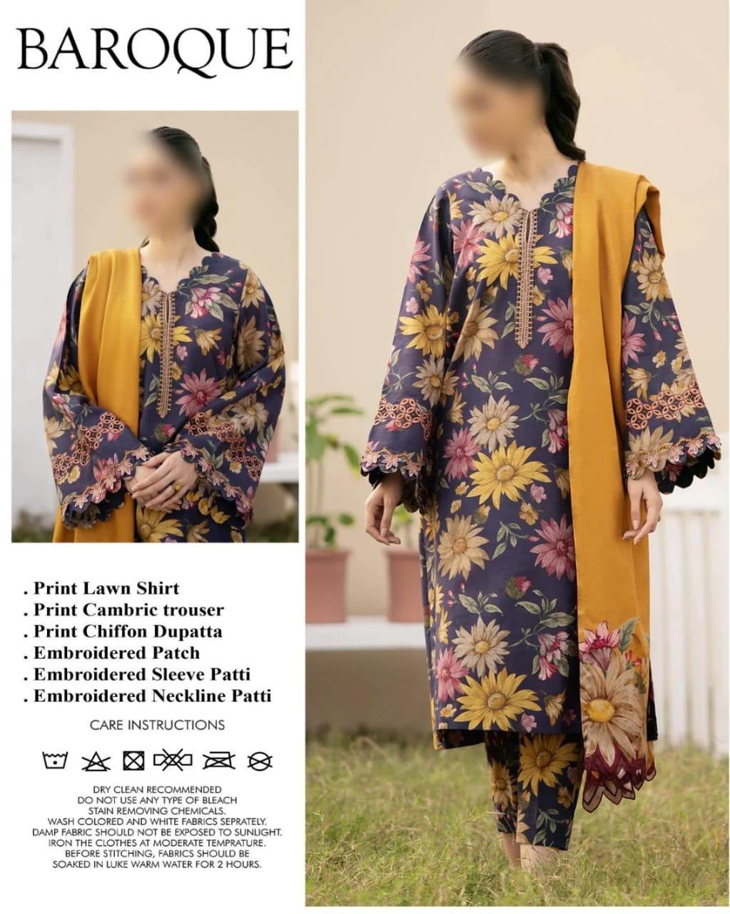 3 Piece - Unstitched Digital Printed Lawn Fabric BQ-402