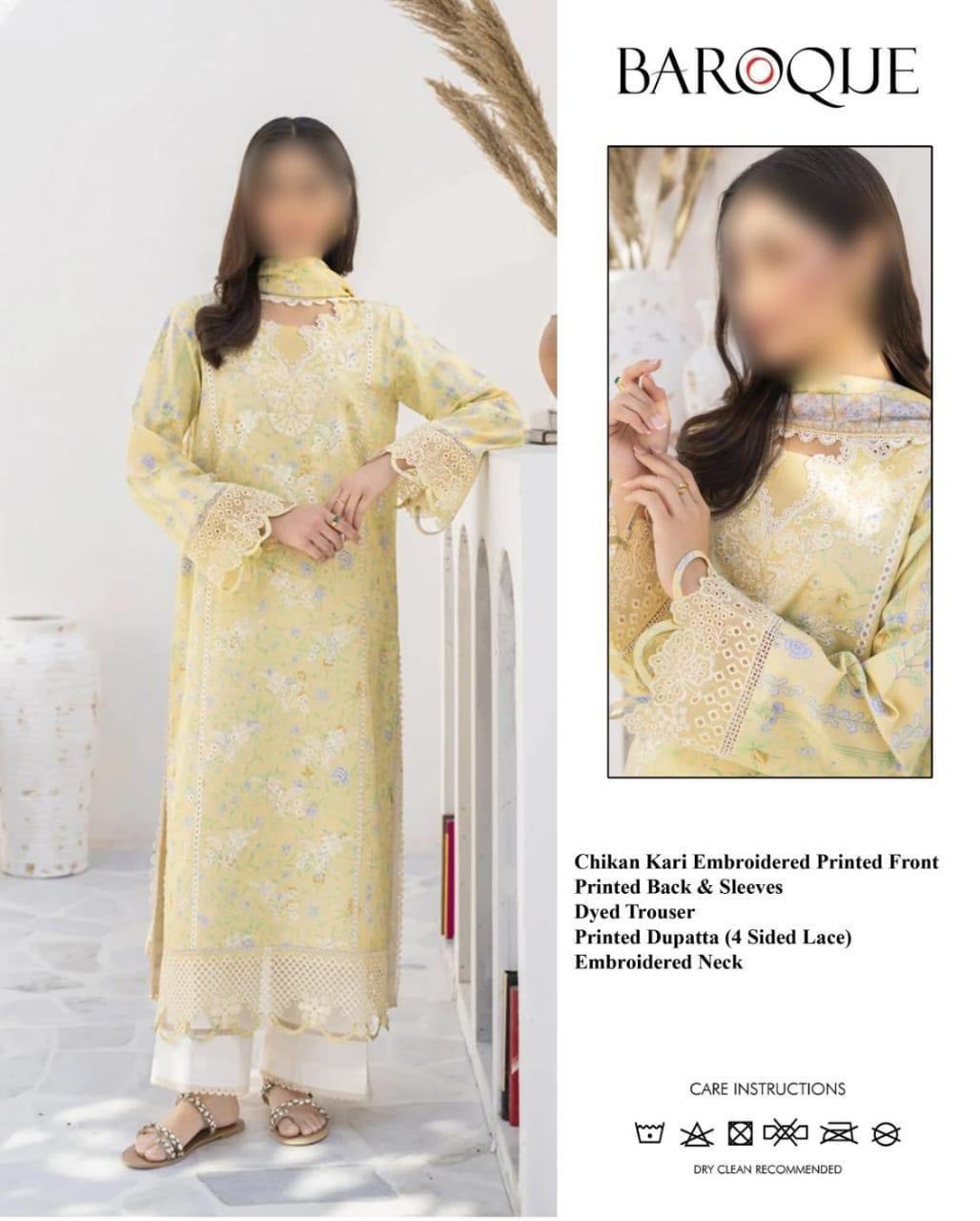 The Baroque Yellow Digital Printed Lawn Collection offers a vibrant and elegant choice for warm-weather wardrobes. Crafted from premium lawn fabric, this collection features intricate digital prints in a striking yellow palette that enhances both casual and formal looks. Known for its lightweight and breathable qualities, the lawn fabric ensures comfort throughout the day, making it ideal for Pakistan’s climate. This collection combines traditional Baroque design elements with modern digital printing techniques, delivering detailed patterns and lasting color vibrancy. Perfect for those seeking a blend of style, comfort, and quality in their seasonal attire.