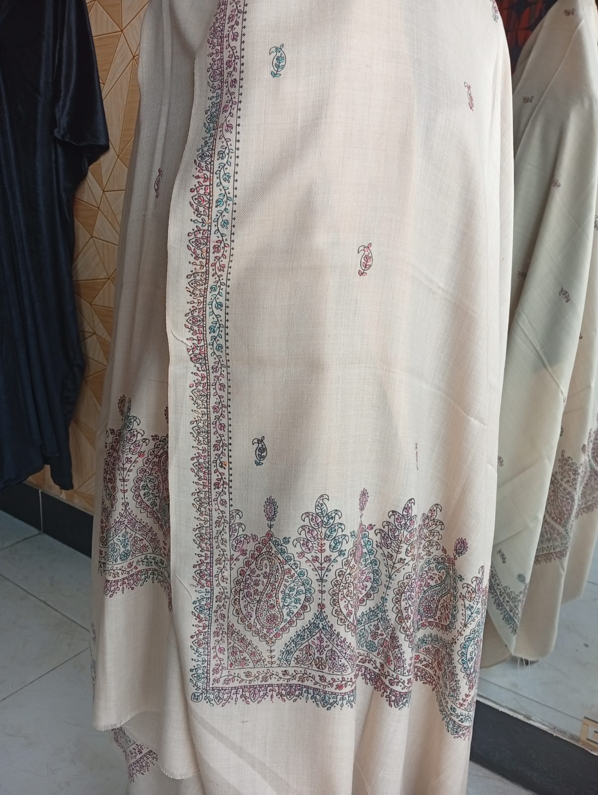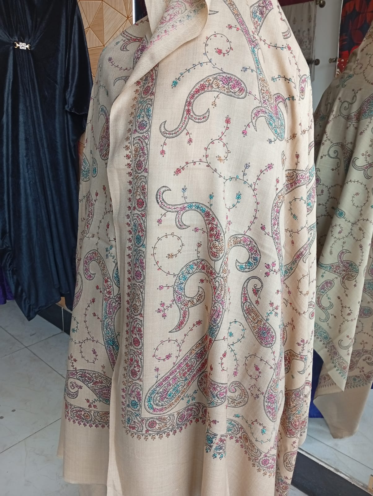 Introducing the Pashmina Handmade large size shawl, the perfect addition to any wardrobe. This shawl comes in a beautiful skin shade and features intricate handmade designs, adding a touch of elegance to any outfit. Made with high-quality materials, it is both comfortable and versatile, making it a must-have for any fashion enthusiast.