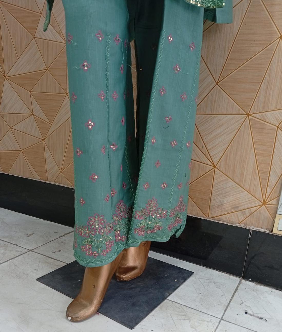 This premium Khaddar embroidered cordset includes a finely crafted shirt and trouser combination. The shirt measures 39 inches in length with a chest size of 24 inches, offering a comfortable and tailored fit. The trousers, with a length of 38 inches, complement the set perfectly for a complete, sophisticated look. Designed with intricate embroidery, this ensemble combines traditional texture with contemporary style, ideal for formal and semi-formal occasions.