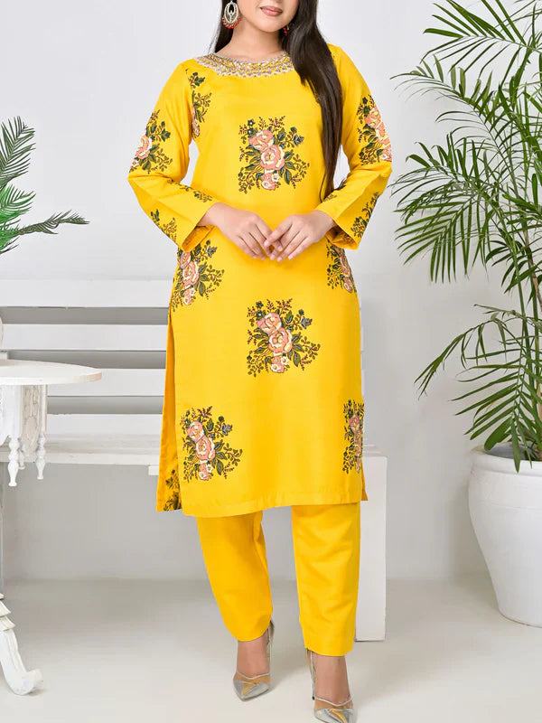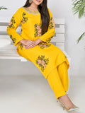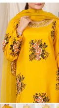 Raw silk embroidered 3pc wd organza dupata stiched by pret diaries...
